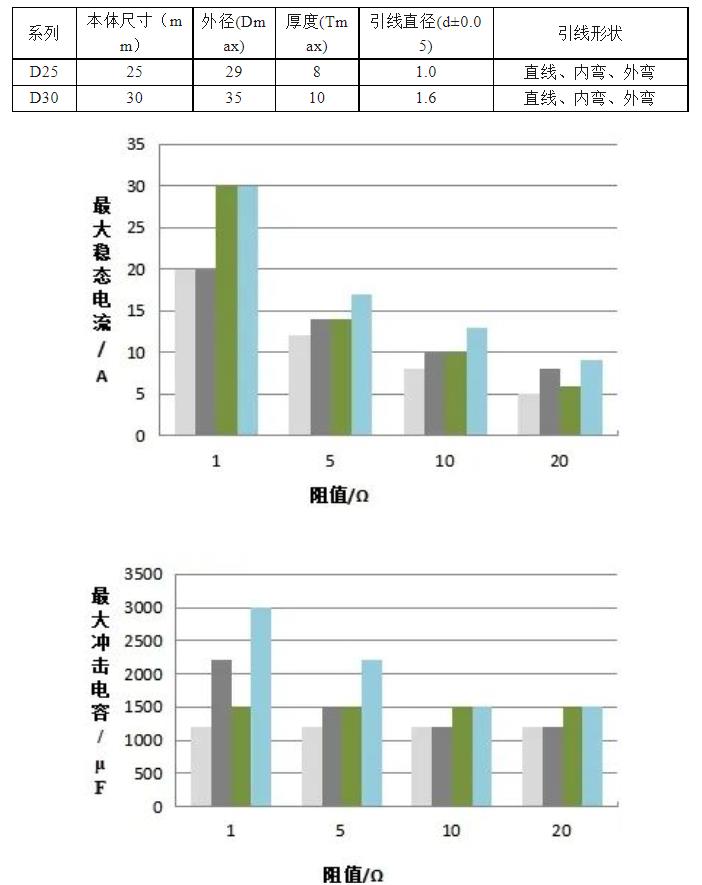 D25/D30NTC高功率熱敏電阻系列:
