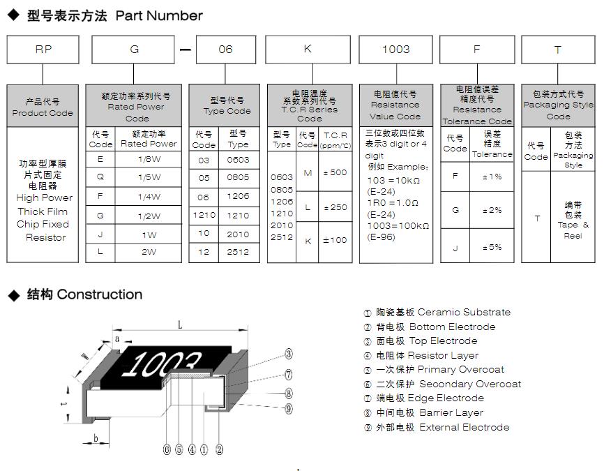 風華功率型厚膜片式固定電阻器型號表示方法: