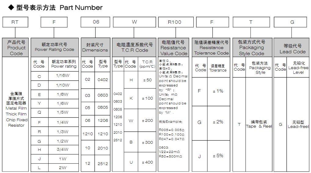 風(fēng)華高科金屬膜厚膜片式固定電阻器型號(hào)命名規(guī)則: