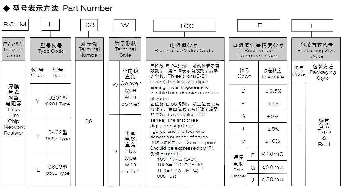 風華高科厚膜片式網絡電阻 型號命名規則:
