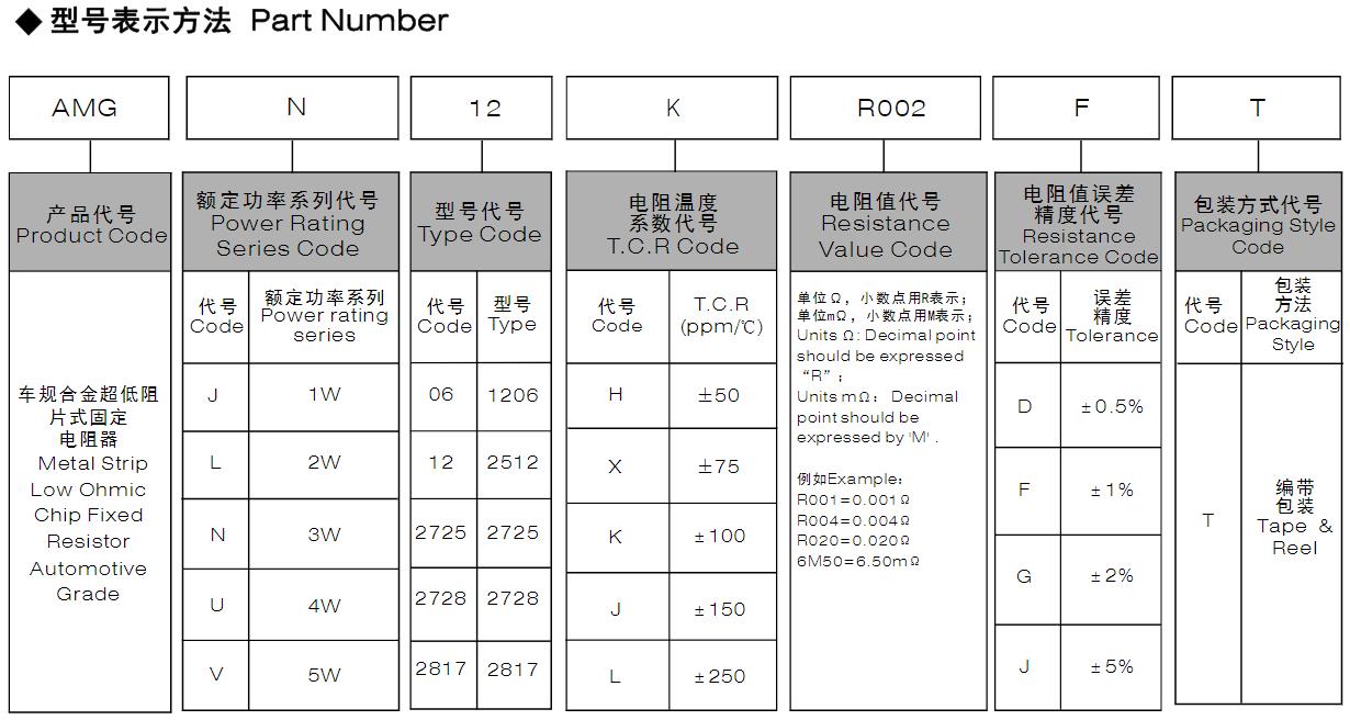 風華高科車規合金超低阻值片式固定電阻器型號命名規則: