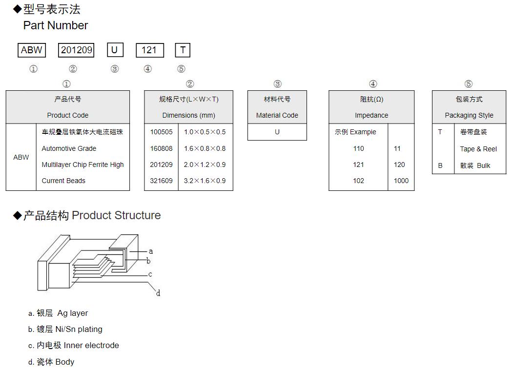 風華高科車規疊層片式鐵氧體大電流磁珠命名規則: