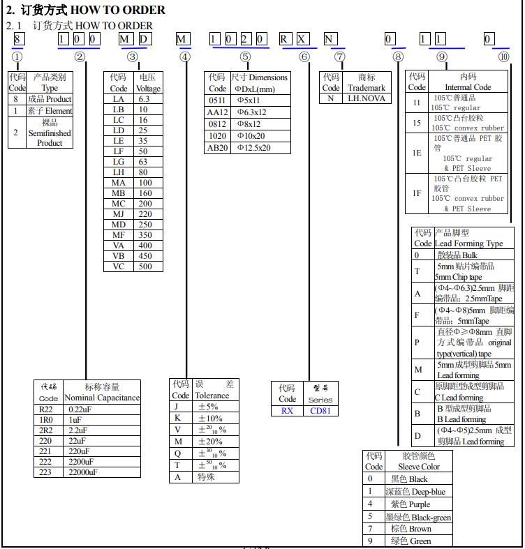 風(fēng)華高科電解電容命名規(guī)則對照表
