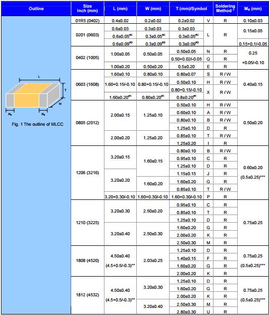 華科貼片電容尺寸圖: