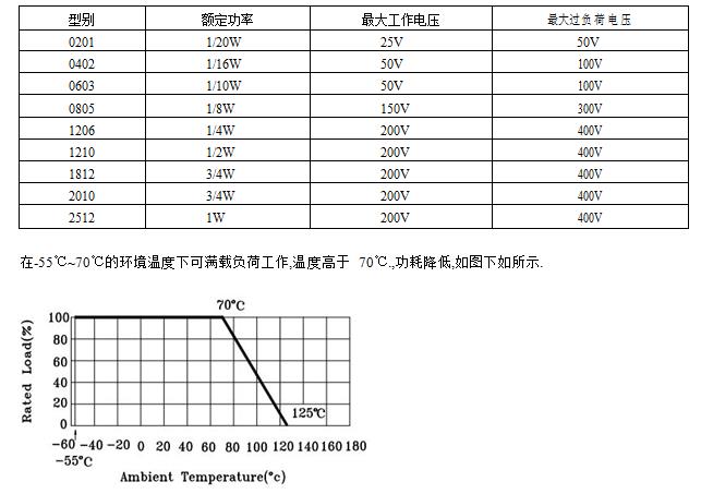 貼片電阻功率對照表