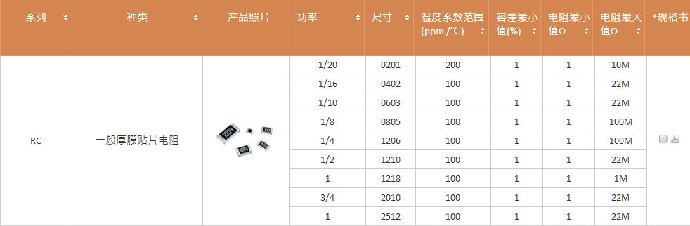 產(chǎn)品系列:國巨常規(guī)厚膜電阻RC系列