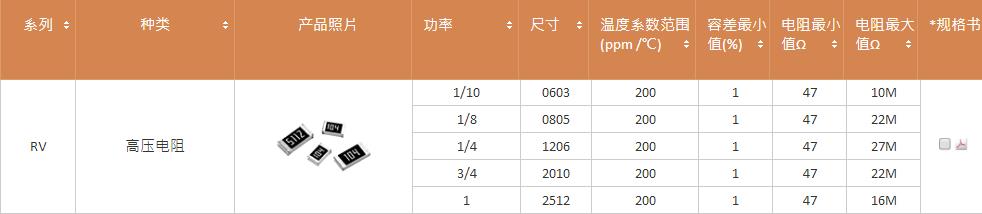 YAGEO國巨高壓貼片電阻一級代理商-RV系列