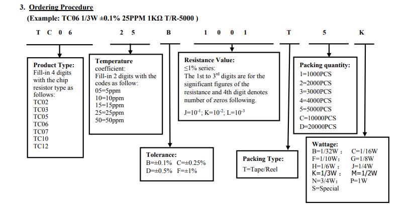 厚聲薄膜電阻命名規(guī)則: