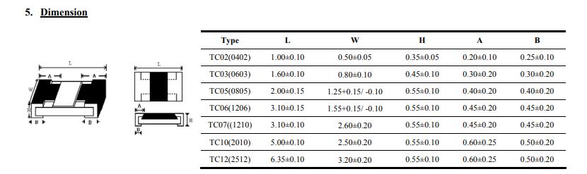 厚聲薄膜電阻規(guī)格尺寸: