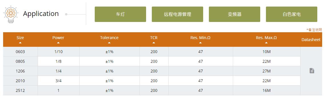國巨的高壓電阻系列產品 ,最適用于工業自動化,電源及電池充電器。該系列專門設計于處理最大電壓500V以內,尺寸規格為0603到2512。表面貼裝電阻適合于通過自動處理貼裝系統。