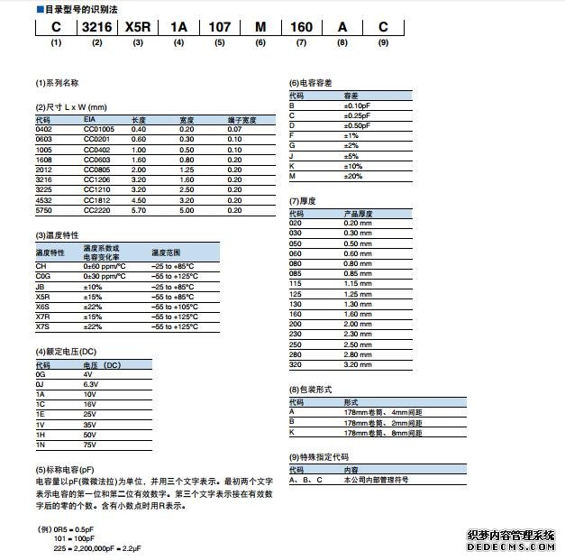 TDK貼片電容型號命名規則: