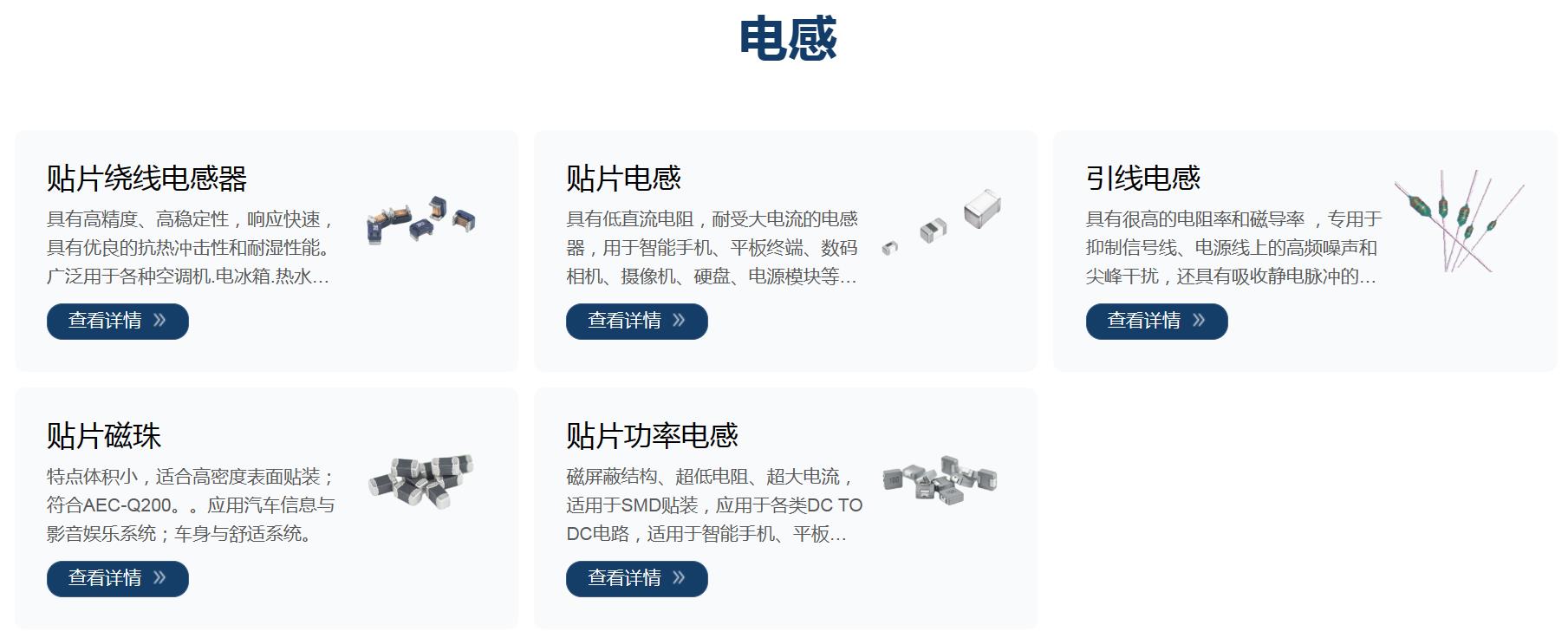 風華電感種類有:貼片電感、貼片磁珠、貼片功率電感、貼片繞線電感器、引線電感及其他產品。
