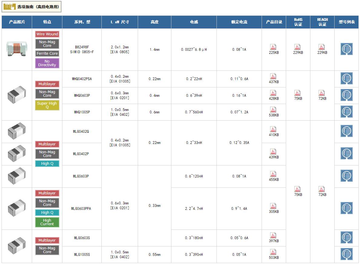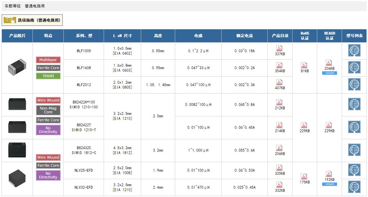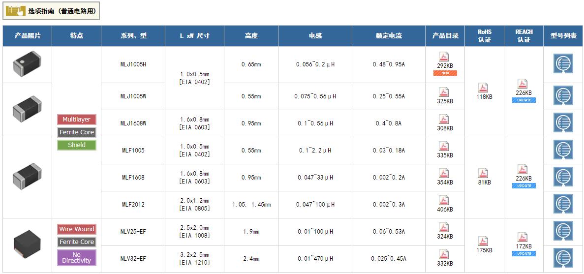 TDK貼片電感:一般等級(jí) 高頻電路用 一般等級(jí) 普通電路用 一般等級(jí) 去耦電路用 一般等級(jí) 電源電路用