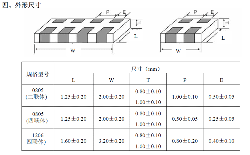 產品封裝:5082(0805二聯體)/5084(0805四聯體)/6124(1206四聯體)