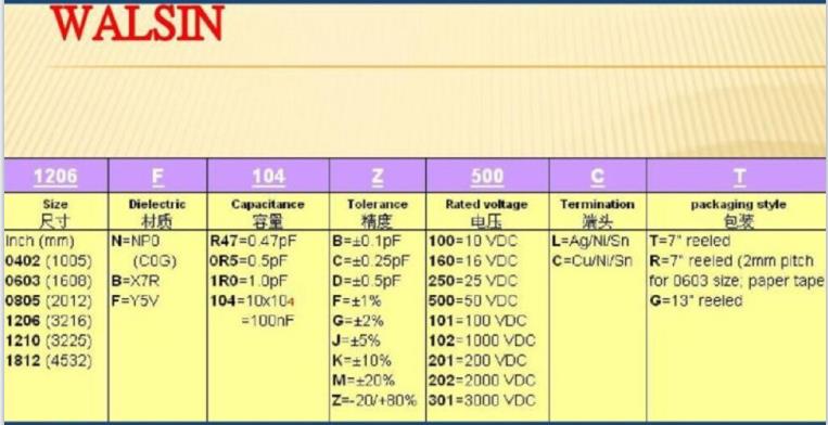 風(fēng)華高科貼片電容命名規(guī)則對照表