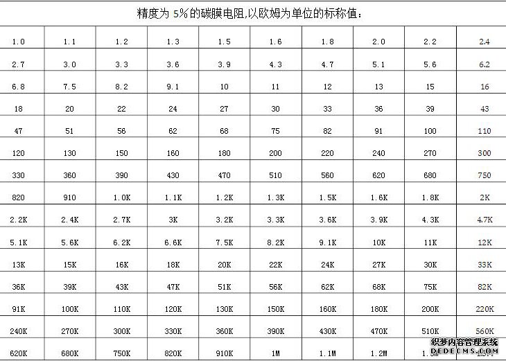 貼片電阻阻值表